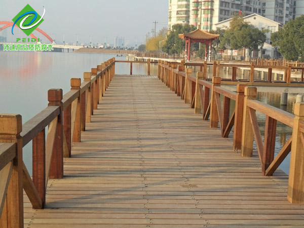 正如其他戶外園林景觀一樣,親水平臺一般都是采用防腐木建造的,因為它不僅要長期在戶外環(huán)境中使用而且還要經(jīng)常與水接觸,所以防腐木可以很好保護,讓它們不會損壞。目前可用來制作親水平臺的木材有兩大類,一類是具有天然防腐性的硬質(zhì)闊葉防腐木,其可被直接使用;另一類是針葉材,需經(jīng)深度防腐處理后才能使用的防腐木。美國南方松、北美黃杉(俗稱花旗松)、落葉松,芬蘭木等針葉材雖都具有一定的天然防腐性能,但由于用這些針葉材制訂的親水平臺在戶外使用,而且使用時間長,是最理想的建造親水平臺的材料。