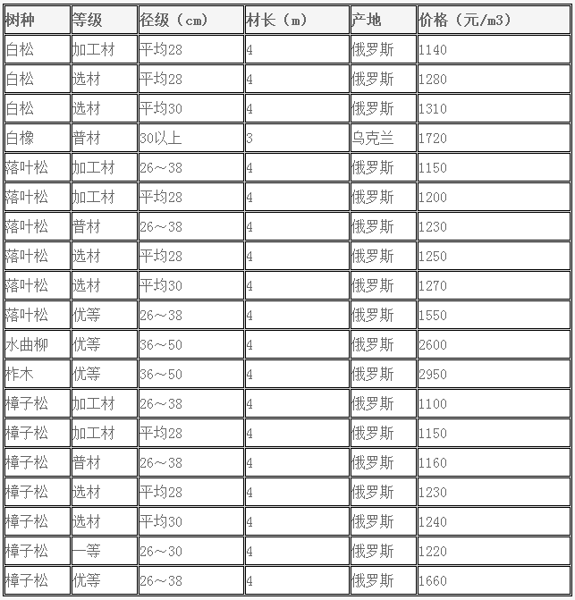 大連木材市場俄樟子松、落葉松原木7月新價(jià)格