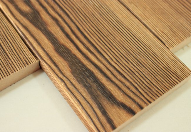 表面炭化木是用氧焊槍燒烤,使木材表面具有一層很薄的炭化層,對(duì)木材性能的改變可以類比木 材的油漆,但可以突顯表面凹凸的木紋,產(chǎn)生立體效果。